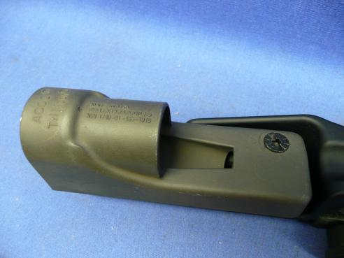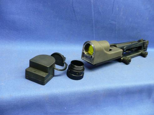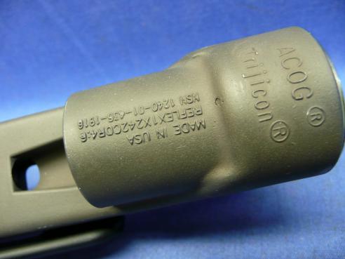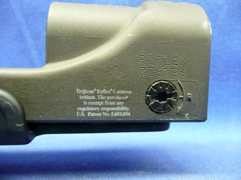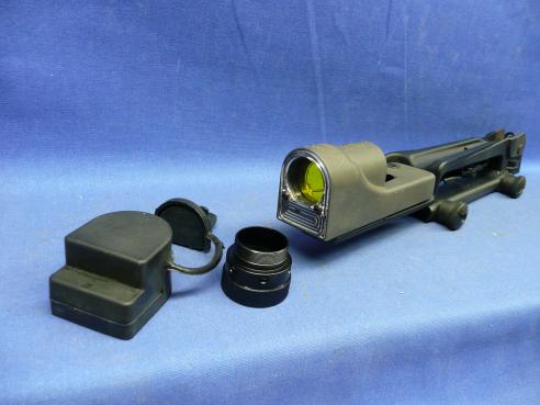 KS02-1: Trijicon RX01 Reflex Sight assy (includes RX01 sight, RX10 Mount, RX20 Polarizing filter, RX21 cover and the Detachable Carry Handle assy. Nice rig with very little usage. This is an older Reflex sight that has the Bible verse behind the model number. 6.5MOA dot reticule.
