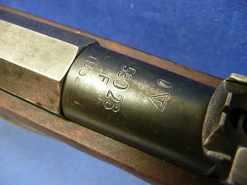 It is chambered in 7.62x54R and has the modified chamber to handle all versions of this round as indicated my the D stamped barrel. Bore is fair, dark with some pitting present from corrosive ammunition or poor field maintenance, but it remains serviceable and is a nice shooting rifle with Light Ball Ammo.