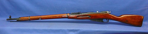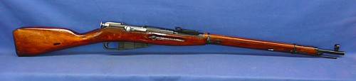 Izhevsk arsenal, typical WWII Production rifle that has been refurbished post-WWII and stored for future use. Shellac on the wood and dark blued metal. Cal 7.62x54R with excellent bore. Import marked on receiver.